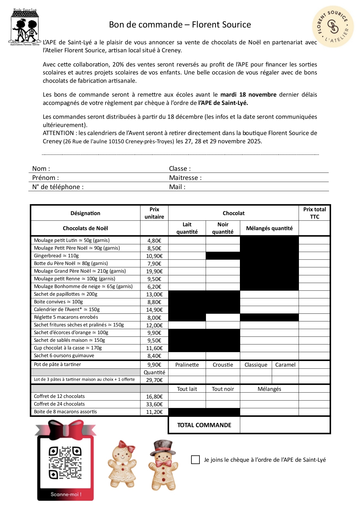 L’association des parents d’élèves vous propose une vente de chocolats et de sapins de Noël