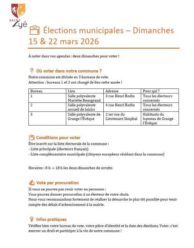 Élections municipales – Dimanches 15 & 22 mars 2026