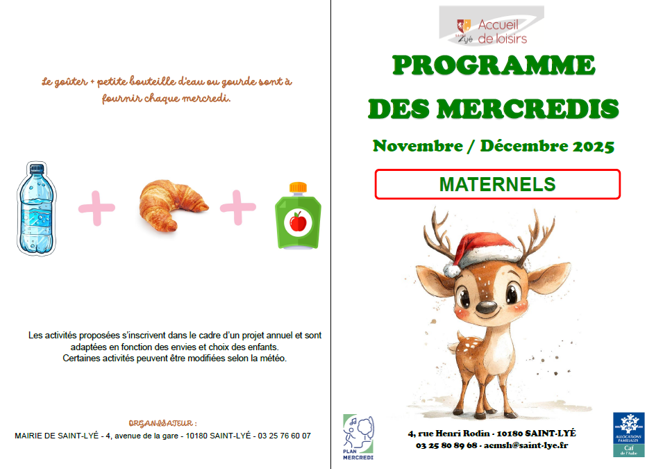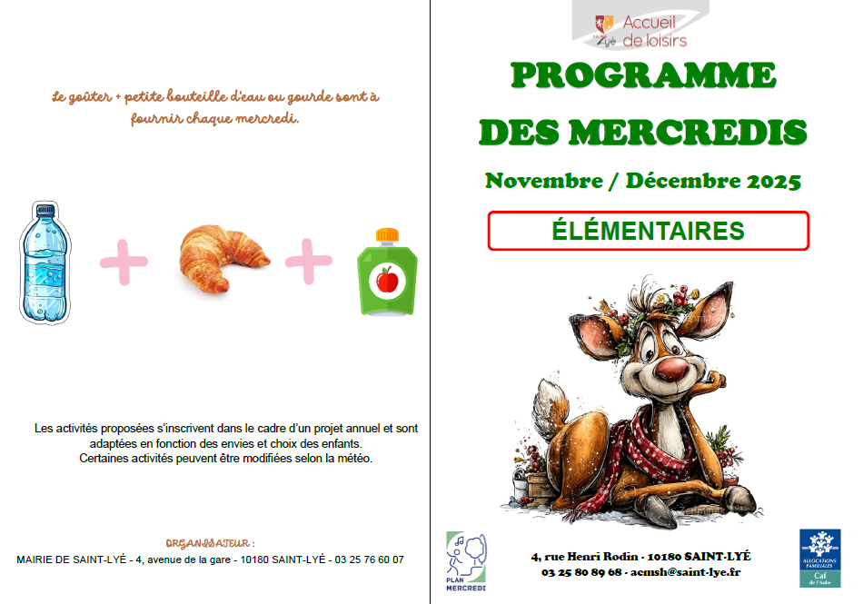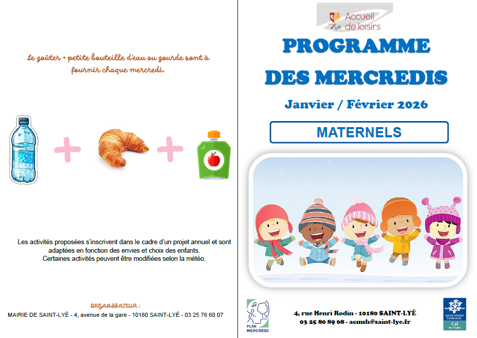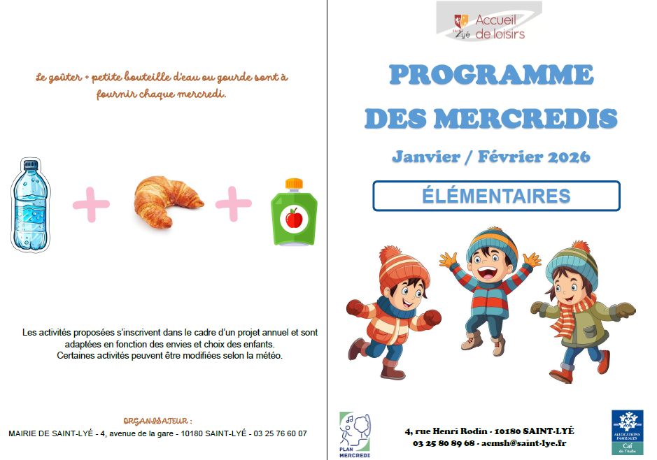 Votre (vos) enfant (s) est (sont) inscrit(s) au sein de l’accueil de loisirs de Saint-Lyé sur le temps des mercredis.