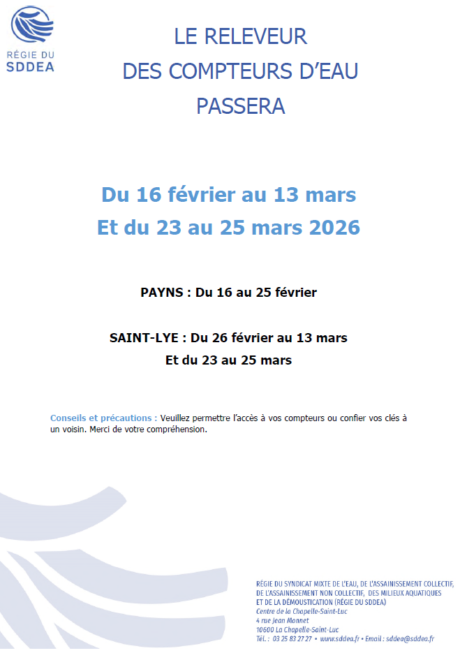 Relevé des compteurs d’eau du 26 février au 25 mars