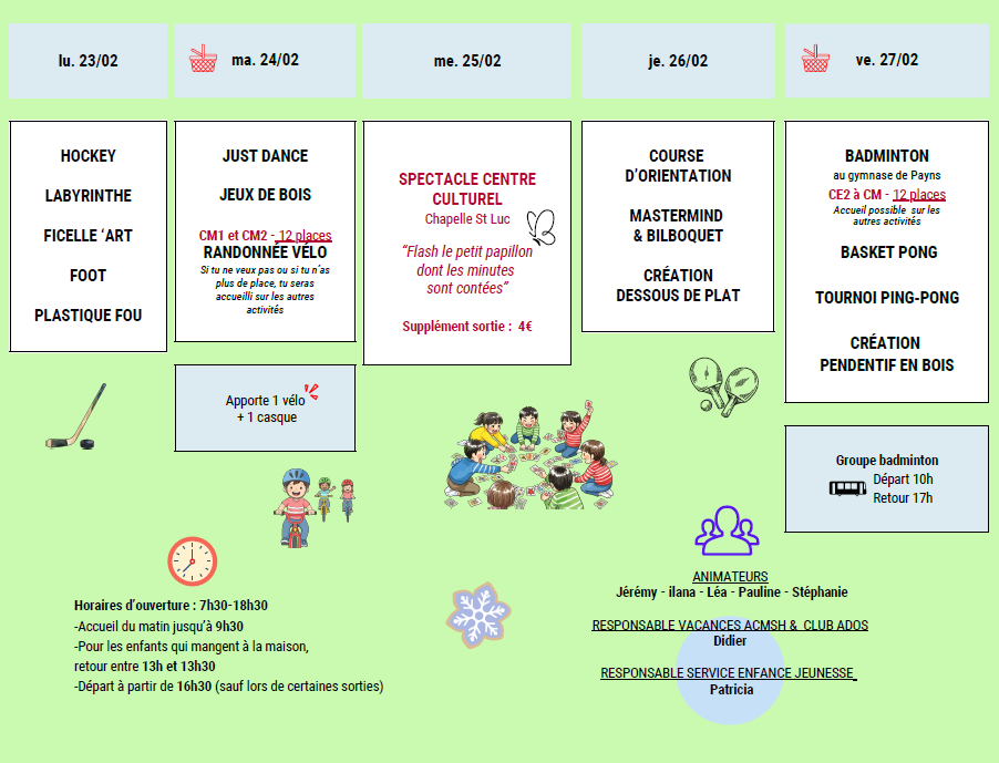 Voici les programmes vacances d’hiver 2025 ACM & CJA (du lundi 16 au vendredi 27 février 2026)