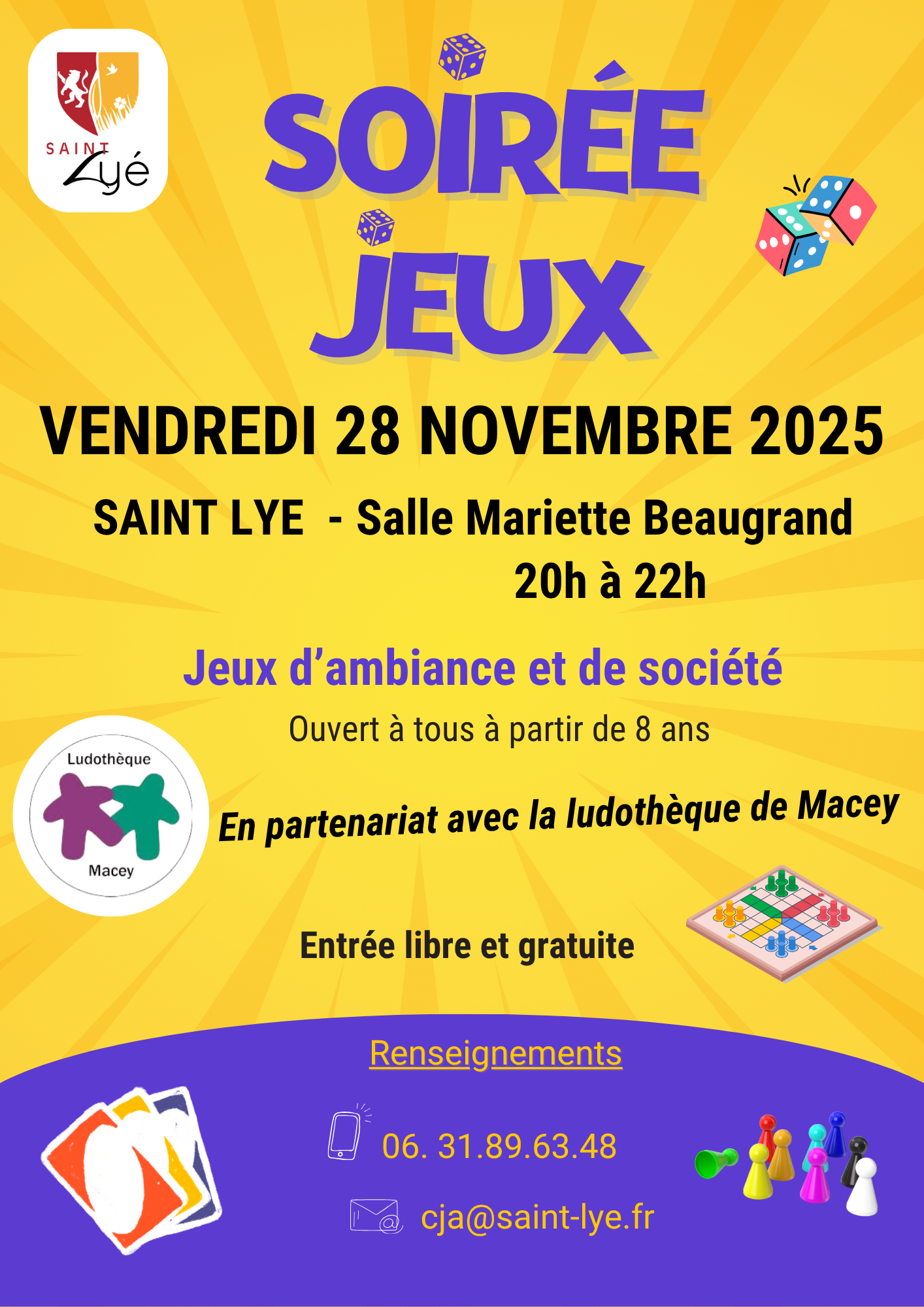 Rendez-vous le 28 novembre de 20h à 22h dans la salle Mariette Beaugrand, en face de la médiathèque pour une sympathique soirée jeux d’ambiance et de société.