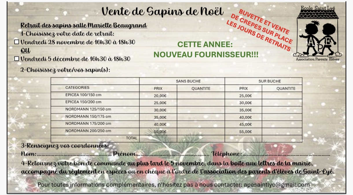 L’association des parents d’élèves vous propose une vente de chocolats et de sapins de Noël