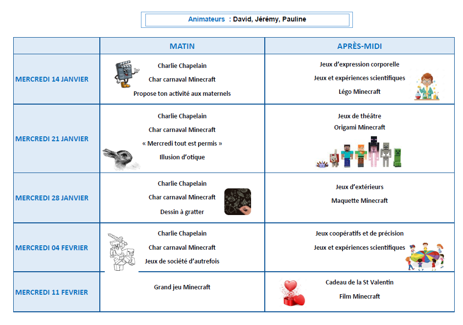 Pour rappel : La demande d’inscription doit être effectuée par courriel au plus tard le mercredi précédent le mercredi concerné.