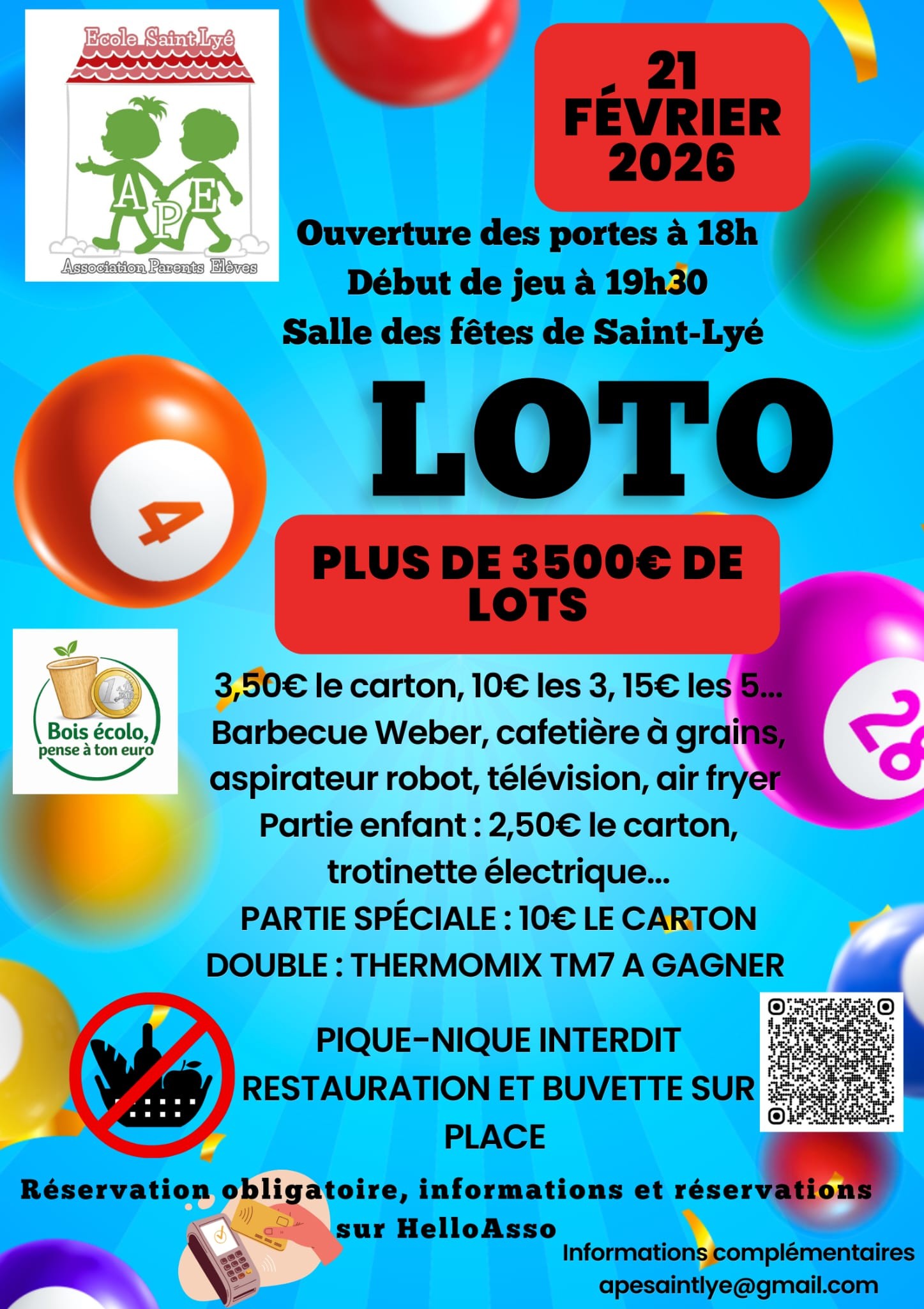 Samedi 21 février, loto de l’ APE à la salle des fêtes