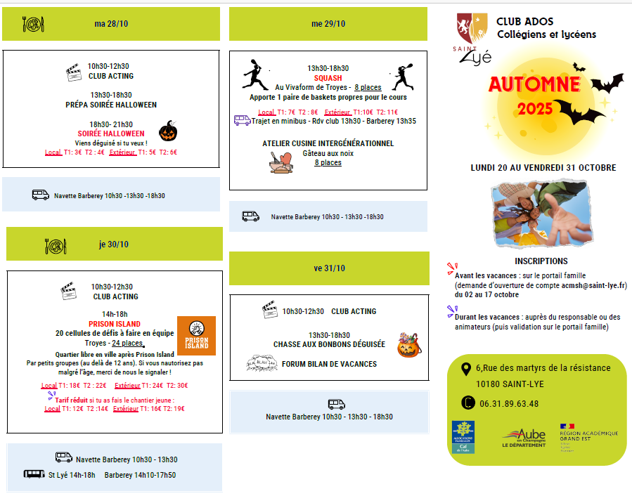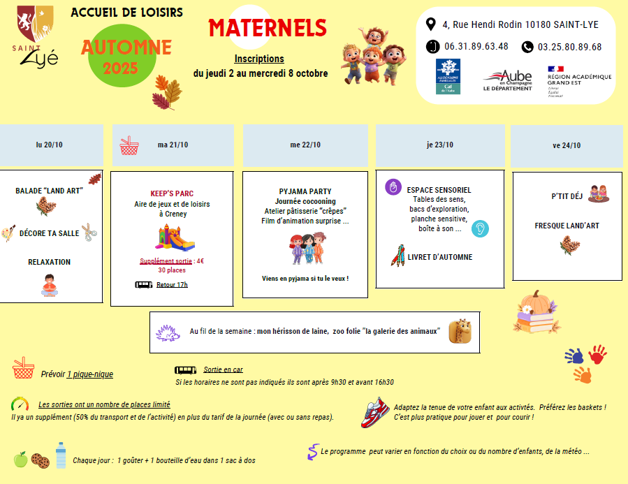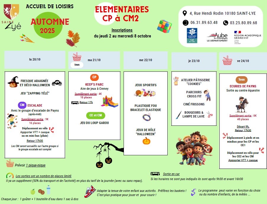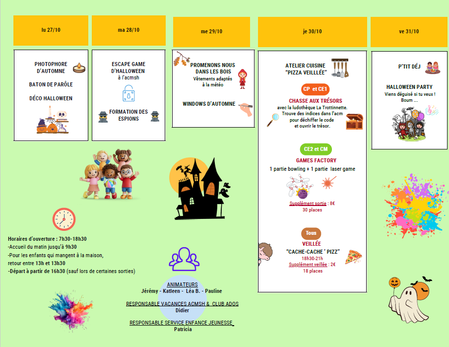 Voici les programmes vacances AUTOMNE 2025 ACM & CJA (du lundi 20 au vendredi 31 octobre 2025)
