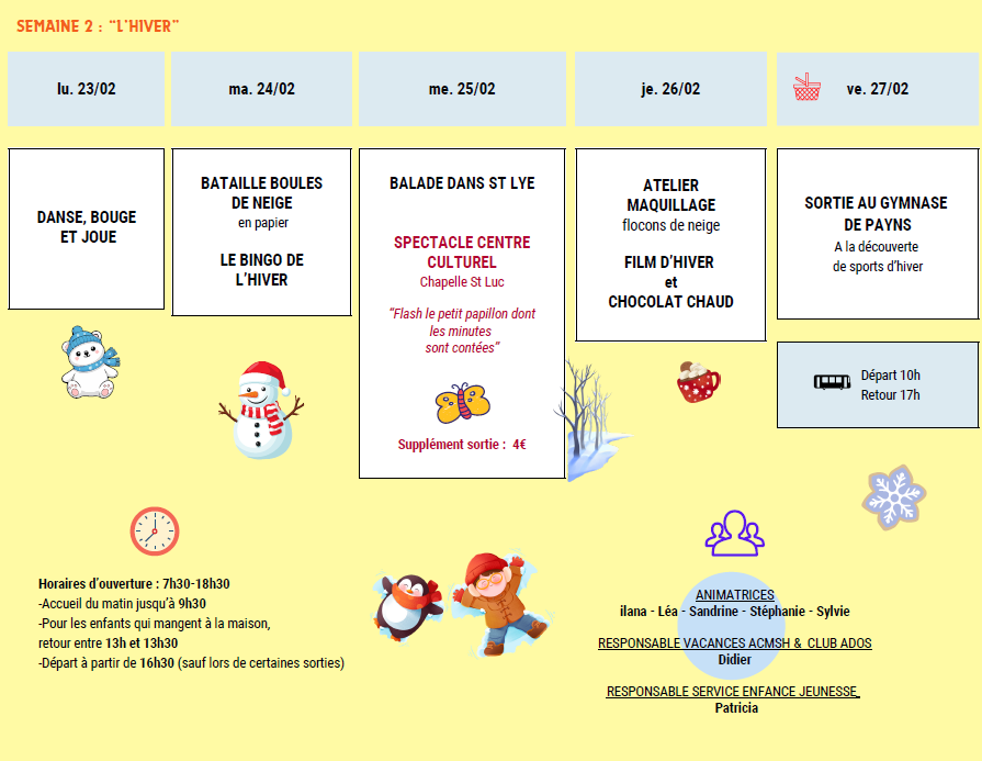 Voici les programmes vacances d’hiver 2025 ACM & CJA (du lundi 16 au vendredi 27 février 2026)